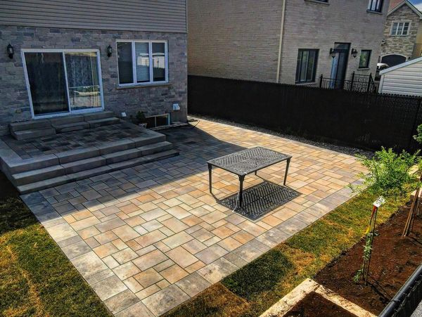 Aménagez votre cour arrière avec un espace soigné, idéal pour se réunir autour d'une table, d'un foyer ou pour circuler autour de votre piscine.
